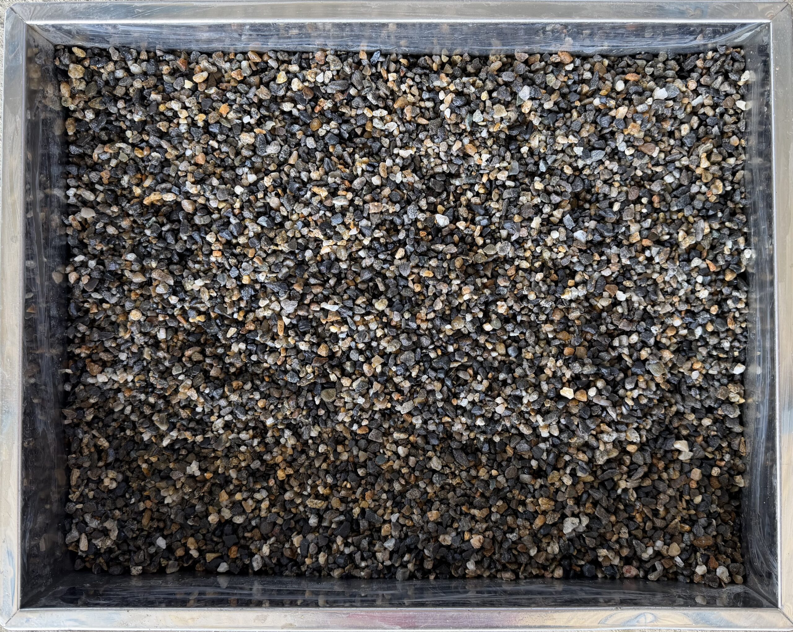 黒・グレー・茶色など自然な色合いが混ざり合う天然川砂利。